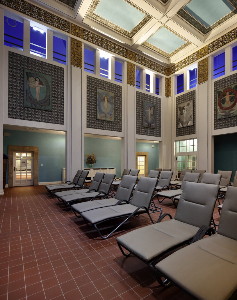Wandverkleidungen, Fliesen, Stuckelemente und Fenster sorgfältig restauriert und durch